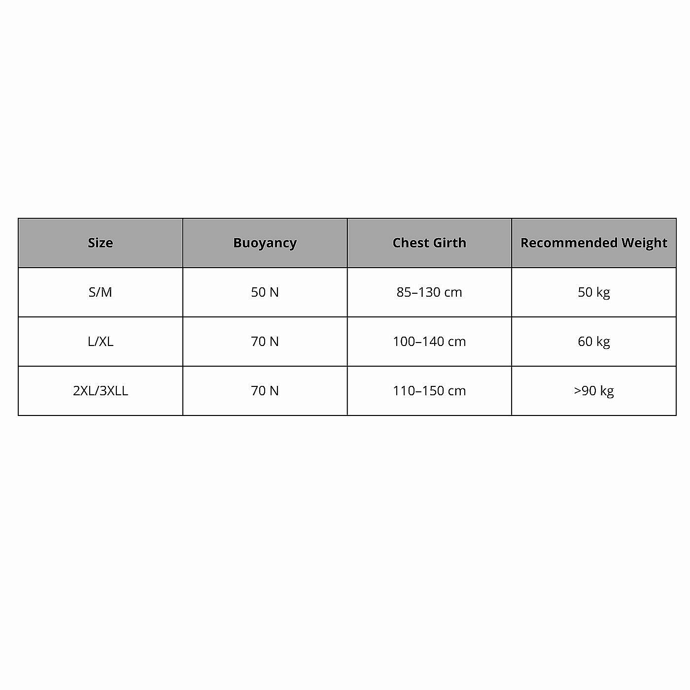 Mentőmellény kiválasztásakor azt javasoljuk, hogy elsősorban a felhasználó súlyára összpontosítson. Ha egy adott méret felső határánál tartasz (pl. L/XL), választhatsz egy nagyobb változatot is (pl. 2XL/3XL), amelyet húzópántokkal állíthatsz be.