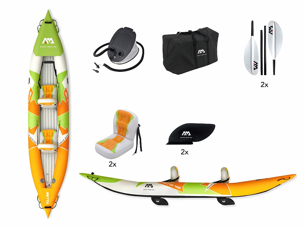 A BETTA 412 kajak egy nagyon kompakt felfújható kajak két ember számára, amelyet a tartósság növelésére terveztek. Fő előnye az egyszerű telepítés, tárolás és használat. Különösen nagy tavakhoz és csendesebb patakokhoz alkalmas. Kis súlyának köszönhetően értékelni fogja az egyszerű kezelhetőséget. Tulajdonságainak köszönhetően különösen alkalmas kezdőknek és haladóbb kajakosoknak.
