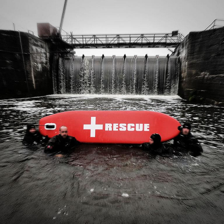 Speciálisan kifejlesztett SUP deszka az integrált mentőrendszer szakembereivel együttműködve. Gyors reagálásra tervezve vészhelyzetekben - ideális folyóvízhez és befagyott vízfelületeken történő beavatkozásokhoz egyaránt. A dupla rétegű kialakítás és a 15 cm-es robusztus vastagság maximális stabilitást garantál még igényes beavatkozások során is. Elöl kötélrögzítési lehetőség található, ami megkönnyíti a kezelést, például gát alatt. A teljes kerület mentén párnázott fogantyúk lehetővé teszik a személyek vagy a szükséges felszerelések kényelmes áthelyezését. A hátsó szelep gyors felfújást biztosít. Az integrált nyomáscsökkentő szelep automatikusan kiengedi a 18 PSI feletti nyomást.